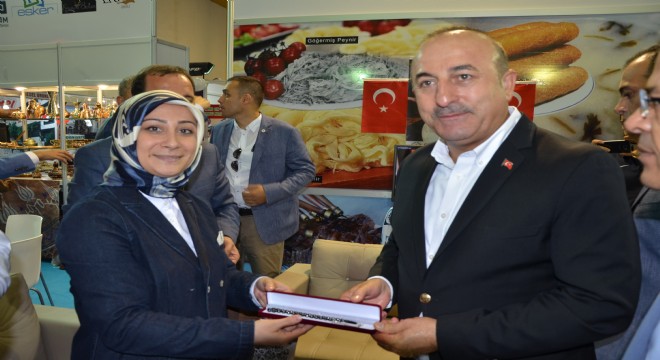 Antalya Ticaret Borası Başkanı Ali Çandır ve beraberindekilerle fuar alanındaki illerin stantlarını ziyaret eden Bakan Çavuşoğlu, Erzurum standını da uğramadan geçmedi. Stantta Erzurum Ticaret ve Sanayi Odası (ETSO) ve Erzurum Büyükşehir Belediyesi yetkilileri tarafından karşılanan Bakan Çavuşoğlu, sergilenen ürünler hakkında bilgi aldı. Bakan Çavuşoğlu’na, ETSO tarafından gümüş işlemeli Oltutaşı tespih hediye edilirken, Erzurum Büyükşehir Belediyesi de, bünyesinde faaliyetlerini sürdüren Erzen Deri tarafından üretimi yapılan deri bir çanta hediye edildi.