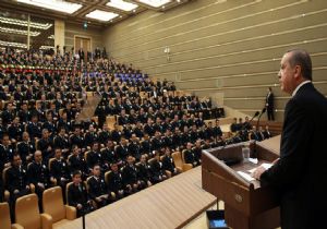 Bugünde içeride ve dışarıda Türkiye’yi yeniden dizlerini üzerine çökertmeye, başını eğdirmeye yönelik çabaların ve kumpasların devam ettiğini kaydeden Cumhurbaşkanı Erdoğan, konuşmasına şöyle devam etti:“Ama artık bugünkü Türkiye eski Türkiye değil. Darbe ve vesayet kıskacından kurtulan milletimiz tüm bunları görüyor. Çözüm sürecine tüm tahriklere, tüm şımarıklıklara, tüm samimiyetsizlik emarelerine rağmen bunun için destek veriyor. Paralel devlet yapılanmasına karşı yürütülen mücadeleyi bunun için destekliyor. Ekonomik kriz tellallarına ve bu yöndeki manipülasyonlara bunun için dönüp bakmıyor. Siyasette kifayetsiz muhterislere bu sebeple yüz vermiyor. Yeni Türkiye’yi işte bunun için destekliyor, bunun için istiyor. Eğer Türkiye 2023 vizyonunu kaybederse inanın bana her bakımdan istikametini yitirir. Bu birikimlerin, bu kazanımların heba olmasına rıza gösteremeyiz. Bunun için hep birlikte sahip çıkacağız. Tüm kurumlarımızla, tüm kesimlerimizle, tüm kardeşlerimizle birlik içinde beraberlik içinde hedeflerimize doğru yürüyeceğiz. İstiklal Marşı şairimiz Mehmet Akif Ersoy’un dediği gibi, ‘Doğacaktır sana vaat ettiği günler hakkın, kim bilir belki yarın belki yarından da yakın.’ Bu teslimiyet çok önemli. Geçmişten elbette ders çıkartacağız ama geçmişe de takılıp kalmayacağız. Yeni Türkiye’yi inşa ederken geçmişin tüm hastalıklarını, eksikliklerini, kusurlarını geride bırakmak durumundayız. Dünkü Türkiye darbelerle, işkencelerle, faili meçhullerle, haksızlıklarla anılıyor olabilir. Dünkü Türkiye terörle, vandallıkla, zorbalıkla yan yana ifade ediliyor olabilir. Yeni Türkiye’de bunlar olmayacak. Biz son 12 yılda bu doğrultuda çok önemli mesafe zaten kat ettik. Önümüzdeki dönemde standartları daha da yükselmek zorundayız. Bu anlayışla diyoruz ki yeni Türkiye demokrasinin, insan haklarının, hukukun esas olduğu bir Türkiye olacaktır. Yeni Türkiye huzurun, adaletin, saygının, sevginin vücut bulduğu, kök saldığı bir Türkiye olacaktır. Bu konuda emniyet teşkilatımıza, polislerimize çok önemli görev düşüyor.”