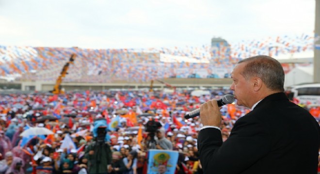 Cumhurbaşkanı Erdoğan, "Milletime soruyorum. Türkiye emanet edilir mi? Bunların bir de cumhurbaşkanı adayı var. Genel Başkanı ile yarışıyor" diye konuştu.