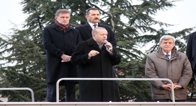 Zeytin Dalı Harekatı’ndan bahseden Erdoğan, “Yola çıkarken, ‘Uzun ince bir yoldayız, gidiyoruz gündüz gece, gideceğiz gündüz gece’ demiştik. Bu yolculuğumuz devam ediyor. Biz bu yola çıkarken, ‘Kefenimizle beraber bu yoldayız’ dedik. Biz rabbimizin tayin ettiği ömrü inşallah bu davada tüketmenin gayreti içinde olacağız. Bu millete efendilik değil, sadece halkımıza hizmettir. İnsanların en hayırlısı, insanlara en çok hayırlı olandır. Önümüze bazen terör örgütleri çıkacaktır. Kendini bilmez bazı terbiyesizler var ya, terörist diye ifade ettiği ÖSO’lar var ya, ulan ahlaksız sen sıcak yatağında yatarken o ÖSO’lar benim Mehmedimle beraber, senin kol kanat gerdiğin teröristleri yok ediyorlar. Sabah rakam 394’dü, Şimdi kim bilir 400’ün üzerindedir. Bunların kökünü kazıyacağız. Siz kalkıp, orada Hatay’a, Kilis’e, Şanlıurfa’ya havan atacaksınız, bunun bedelini ödeyeceksiniz. Bizim şehitlerimizin bedeli öyle ucuz değil. Hem içeride, hem dışarıda kökünü kazıyacağız. Mehmed’im sevinin, başlar yüksekte. Ölsek de sevinin, eve dönsek de. Sanma bu tekerler kalır tümsekte. Yarın elbet, elbet bizimdir. Gün doğmuş, gün batmış ebed bizimdir. Beni yaradan Allah sizleri de yarattığı için sizleri seviyorum. Bir olacağız, iri olacağız, diri olacağız, kardeş olacağız, Hep birlikte Türkiye olacağız” diye konuştu.