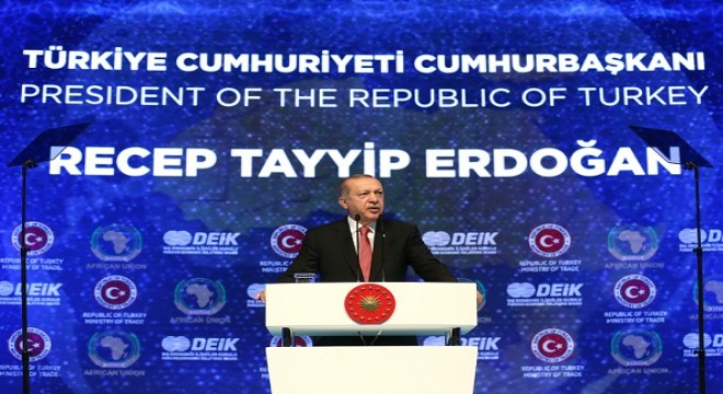 Türkiye’nin Afrika’daki yatırımlarının arttığına dikkat çeken Erdoğan, "Ülkemizin Afrika’ya doğrudan yatırımları 6.2 milyar doları geçti. Müteahhitlerimizin 65 milyar dolar değerine bin 150 proje üstlenmiş durumda. Türk Eximbank projeler için kredi desteği sağlıyor. Şimdiye kadar 46 Afrika ülkesi ile ticaret ve ekonomi işbirliği anlaşması imzaladık. 28 ülke ile yatırımların karşılıklı teşviki anlaşması, 5 ülke ile serbest ticaret anlaşması, 12 ülke ile çifte vergilendirmenin önlenmesi anlaşması imzaladık. Bu anlaşmaların büyük kısmı yürürlüğe girdi. Ayrıca DEİK bünyesinde 43 Afrika ülkesi ile iş konseyi tesis edildi. Kıta ile ticaretimizi 3.7 milyar dolar seviyesinden 2017 yılından 20.6 milyar dolara yükseldi. Sahra altı Afrika ülkeleri ile ticaret hacmimiz 7.1 milyar dolara ulaştı. Kıtada kapasite geliştirerek gerekli altyapıyı inşa ederek ve istihdam üreterek özellikle gençlerin ve kadınların hayata ümitle bakabilmeleri için elimizden gelen desteği veriyoruz" şeklinde konuştu.