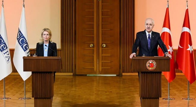 Meclis Başkanı Kurtulmuş, Avrupa Güvenlik ve İşbirliği Teşkilatı Parlamenter Asamblesi (AGİT PA) Başkanı Pia Kauma ile TBMM’de bir araya geldi. Kurtulmuş ve Kauma, heyetler arası görüşmenin ardından ortak basın toplantısı düzenledi.