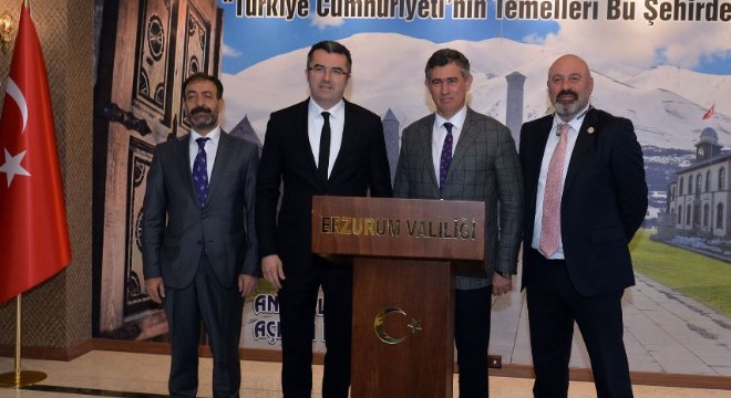 Şehrin genel yapısı hakkında bilgi veren Vali Okay Memiş, Erzurum’un tarih boyunca önemini koruduğunu söyledi. Stratejik öneme sahip bir ilde görev yapmanın gururunu yaşadıklarını ifade eden Vali Memiş, “Erzurum Cumhuriyetin temellerinin atıldığı bir il. Dadaşlar Gazi Mustafa Kemal Atatürk’e 58 gün ev sahipliği yapıyor. Erzurum aynı zamanda Osmanlı’da da çok önemli bir vilayet. Osmanlı İmparatorluğu döneminde 53 tane tabyası olan bölgenin çok stratejik bir ili. Bin yıllık Türk İslam medeniyetinin adeta tapusunun olduğu bir yer. Ulu Cami, Lala Paşa Medresesi, Çifte Minareli Medrese İstanbul’un Sultan Ahmet Meydanı gibi çok tarihi mekânlara ev sahipliği yapıyor. O bölgelerde Büyükşehir belediyemizle beraber kentsel dönüşüm projelerimiz olacak. Nice şehitler vermiş emperyalist güçlere de Ermeni çetecilere de Anadolu’nun kapısını kilitlemiş bir il. O anlamda bizim manevi sorumluluğumuz oldukça yüksek. Bin yıl boyunca kültür ticaret ekonomik üretimi çok fazla olmasa da çok stratejik önemi var. Bunun yanında bizim üretim ve istihdam anlamında çok önemli projelerimiz var. 4 tane tekstil kent fabrikasını yaptık. İlk etapta 1000 kişiyi istihdam edeceğiz. Ve bu tür fabrikaları yapmaya devam ediyoruz. Büyükbaş hayvancılıkta Konya’dan sonra 2’inci sıradayız. Erzurum Türkiye’de en fazla meranın olduğu il. İnsanlarımızı köyünde doyurmak için projeleriniz var. 5 bin çiftçiye yem bitkisi tohumu desteği sağladık. Turizmde de 1 milyon turist hedefimiz var. Kış turizminin çok önemli merkezlerinden birisiyiz. Bu yıl pistlerimizin hem güvenliği artırdık hem de standartlarını ve pistlerin uzunluğunu artırdık. Ayrıca vilayetleri evi otelini yaptık. Çünkü turizm istihdam demek. Asayiş olayları açısından terörle mücadele açısından bölgenin en huzurlu illerinden birisiyiz. Dadaş kültürünün bunda çok önemli bir etkisi var. Çocuklarımız dadaş kültürüyle yetişince hem büyüklerine hem de devletine, milletine, vatanına ve bayrağına saygılı yetişiyor” dedi.