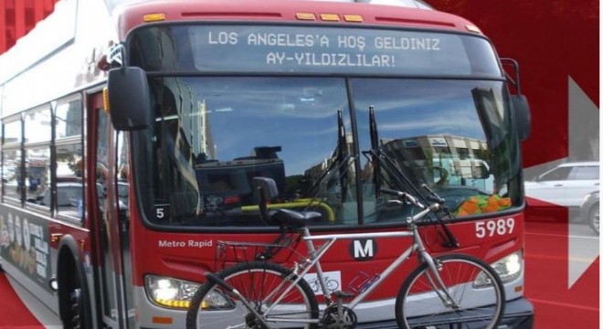 A Milli Futbol Takımı’nın, Dünya Kupası'na gidişinin kesinleşmesinin ardından Los Angeles’ta belediye otobüslerinin üzerine Türkçe olarak "Los Angeles'a hoş geldiniz Ay Yıldızlılar" yazıldı.