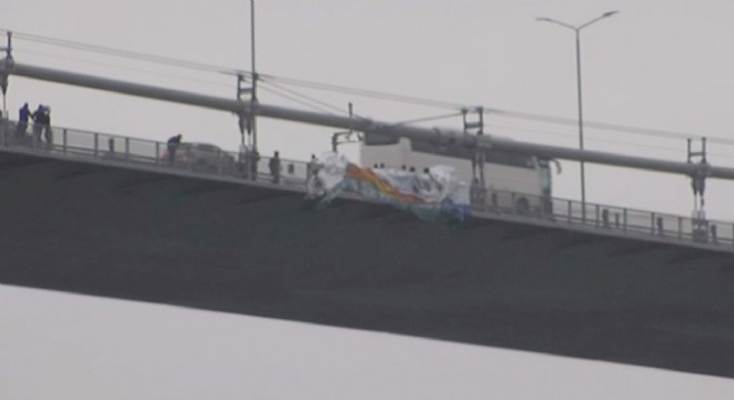 Genç Aktivistler Derneği tarafından 15 Temmuz Şehitler Köprüsü’ne, 4 dilde ‘Kudüs İslam'ındır’ yazılı 450 metrekarelik dev pankart asıldı.