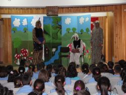 Öğrencilere orman ve ağaç sevgisinin aşılanmasının amaçlandığı Sincap Çocuk Tiyatrosu ekibinin gösterisi miniklerden büyük alkış aldı.