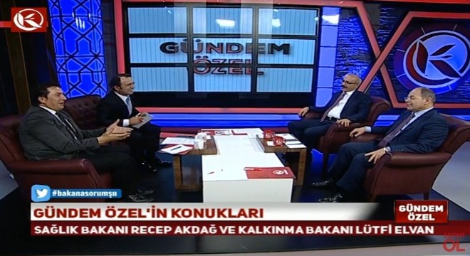 Erzurum’daki Doğu Anadolu Projesi Kalkınma Ajansı Hizmet Binası’nın açılışına Sağlık Bakanı Recep Akdağ ile birlikte gelen Kalkınma Bakanı Lütfi Elvan, Kardelen TV’deki Gündem Özel programına konuk oldu. İHA Erzurum Bölge Müdürü Ayhan Türkez ve Kardelen TV Ana Haber Spikeri Mehmet Emin Avanaş’ın sorularını cevaplandıran iki bakan, gündeme dair açıklamalarda bulundu.