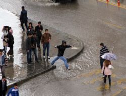 ERZURUM (İHA) - Erzurum’da dün akşam saatlerinde yaklaşık 10 dakika doluyla karışık yağan sağanak yağmur, etkili oldu. Gök gürültüsünün ardından başlayan doluyla karışık sağanak yağmur yağışı yaklaşık 10 dakika sürdü. Yağmura hazırlıksız yakalanan Erzurumlular, ıslanmamak için koşarak otobüs duraklarına, kapalı mekanlara sığındı. Kısa süreli ama hızlı yağan yağmur nedeniyle cadde ve sokaklarda su birikintileri oluştu.Trafik adeta felç olurken, vatandaşlar ise su birikintilerinden geçmek için zor anlar yaşadı.Yağmura hazırlıksız yakalandıklarını belirten vatandaşlar, “Islandık. Sabah hava iyiydi. Bir anda yağmur bastırınca sırılsıklam olduk” dedi.