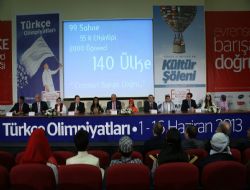 Bu yıl 'Evrensel Barışa Doğru' sloganıyla 140 ülkeden 2 binden fazla öğrencinin katılımıyla gerçekleştirilecek olan Türkçe Olimpiyatları’nın basın toplantısı Atatürk Olimpiyat Stadı’nda yapıldı. Toplantıya, TBMM Başkanvekili aynı zamanda Uluslararası Türkçe Olimpiyatları Tertip Heyeti Başkanı Prof. Dr. Mehmet Sağlam, eski TDK Başkanı ve Türkçe Olimpiyatları Bilim Kurulu Başkanı Prof. Dr. Şükrü Haluk Akalın, Fatih Üniversitesi Rektörü ve Türkçe Olimpiyatları Tertip Heyeti Üyesi Prof. Dr. Şerif Ali Tekalan ve Türkçe Olimpiyatları Genel Sanat Yönetmeni Cemil Özen ile olimpiyatlarda yer alacak bazı öğrenciler katıldı.