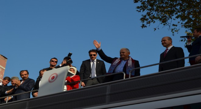 Bir yandan FETÖ ile bir yandan bölücü örgüt ile amasız mücadele verdiklerini kaydeden Başbakan Yıldırım "Ülkemizin bütünlüğü için canla başla çalışıyoruz. Devletin bekası için, sizin güvenliğiniz için sizin uşağınızı da içişleri bakanı yaptık. Sizin evladınız Süleyman Soylu, polisiyle, jandarmasıyla, ekibi ile gece gündüz demeden memleketin her köşesinde hangi yuvada hangi mağarada hangi delikte bir terörist varsa hepsi yok oluncaya kadar bu mücadele devam edecektir. Biz 15 sene çalıştık çabaladık yolları böldük şehirleri birleştirdik, hayatları birleştirdik. Yolları böldük, gönülleri birleştirdik. Yolları böleriz ama Türkiye'yi böldürmeyiz. Bölmeye çalışanlara da hak ettikleri cevabı veririz" diye konuştu.