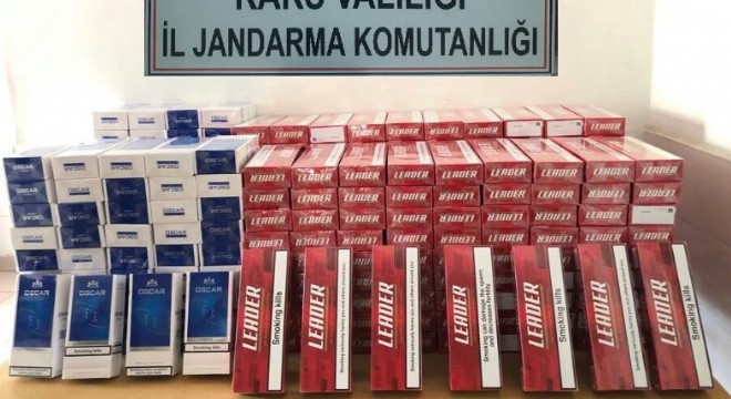Kars İl Jandarma Komutanlığı KOM Şubesi ve Sarıkamış İlçe Jandarma ekiplerince ülke genelinde “Kaçak-Sahte Alkol Uygulaması” kapsamında Sarıkamış Karakurt Köyü’nde icra edilen yol kontrollerinde Iğdır’dan Erzurum istikametine seyir halinde olan yolcu otobüsünde yapılan aramada, otobüste yolcu olarak bulunan A.G.’ye ait ülkeye kaçak yollardan getirdiği tespit edilen 2 bin 800 paket bandrolsüz kaçak sigara ele geçirilerek muhafaza altına alındı.