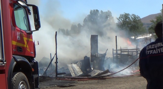Erzurum’da bilinmeyen nedenden dolayı çıkan yangında 2 gecekondu küle döndü.