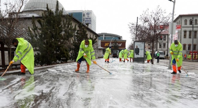 Büyükşehir Belediyesi’ne bağlı Tarımsal Hizmetler Daire Başkanlığı ile Çevre Koruma ve Kontrol Daire Başkanlığı ekiplerince ortaklaşa yürütülen bir çalışma kapsamında ana ve ara arterler önce köpüklü sularla yıkanıyor, ardından ilaçla dezenfekte ediliyor. Toplamda 185 kişiden oluşan ekipler, kamusal, ticari ve sosyal alanlarda çok geniş kapsamlı bir temizlik ve dezenfeksiyon çalışması yürütürken, söz konusu seferberlik için ULV donanımlı araçlardan vakumlu ve hidrostatik süpürgelere, arazözlerden çöp taksi ve çit yıkama ekipmanlarına varıncaya kadar çeşitli araç-gereçlerden de istifade ediliyor. Cumhuriyet Caddesi’nde start verilen çalışmalar, ara arterler ve sokaklarla devam ederken, sadece dezenfeksiyon çalışmaları için şehir merkezinde 35 kişilik bir ekip görev yapıyor.
