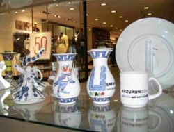 Horasan Kaymakamlığınca açılan çini kursuna katılan gençlerin eserlerinden oluşan sergi AVM’de açıldı. Sergideki ürünler arasında 2011 Universiade logo ve maskotlu vazo, tabak ve bardaklar da yer aldı.