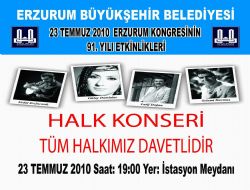23 Temmuz’daki Erzurum Kongresinin 91’inci yıl dönümü etkinlikleri kapsamında düzenlenecek konserde halk müziği sanatçıları sahne alacak.