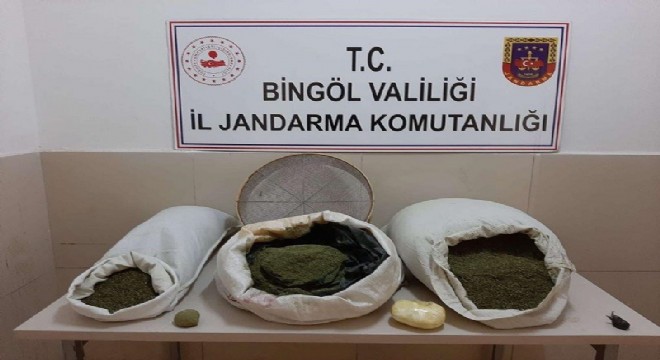 Valilik tarafından yapılan açıklamada, “İl Jandarma Komutanlığı tarafından uyuşturucu ve uyarıcı madde imal ve ticaretinin önlenmesine yönelik yapılan istihbari çalışmalar neticesinde, Genç ilçesi kırsalında icra edilen faaliyette şüpheli şahsın evinde ve eklentilerinde arama sonucunda 24 kilogram toz esrar ve 1 adet elek ele geçirilmiştir. Şüpheli 1 şahıs adli makamlara sevk edilmek üzere gözaltına alınmıştır” denildi.