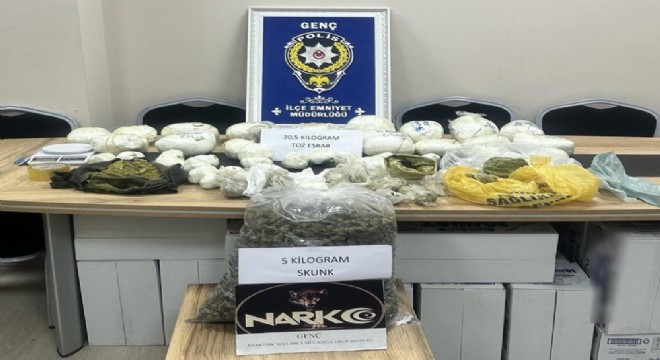 Bingöl’ün Genç İlçesinde polis ekipleri tarafından yapılan operasyonda 25 kilo 530 gram uyuşturucu madde ele geçirildi.