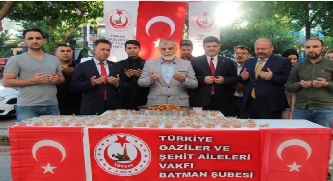 Batman’da Türkiye Gaziler ve Şehit Aileleri Vakfı, Bingöl-Elazığ kara yolunda 24 Mayıs 1993'te usta birliklerine giderken bölücü terör örgütü PKK mensupları saldırısında şehit olan sivil kıyafetli ve silahsız 33 asker için lokma dağıttı.