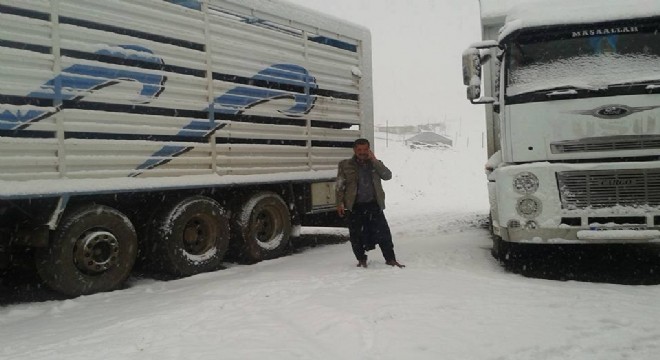 Erzurum’un Tekman ilçesi ile Bingöl’ün Karlıova ilçesi arasındaki yolda küçükbaş hayvan yüklü kamyonlar yolda mahsur kaldı. Gaziantep’ten gelerek Bingöl istikametine hayvan nakliyatı yaptıklarını belirten Selahattin Kocaman ve Mahmut Çiçek, "Sabah kar ve tipiyle birlikte yol kapandı ve uzun bir süredir mahsur kaldık. 179 kriz merkezine durumu bildirdik. Yolun açılıp kurtarılmayı bekliyoruz" dedi.