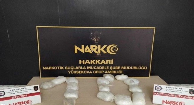 Hakkari'de 5 kilo 400 gram eroin maddesi, 1 kilo 936 gram metamfetamin maddesi ele geçirildi.