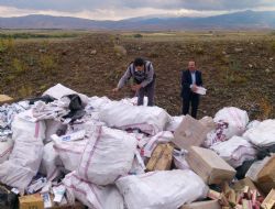 Pasinler ilçesinde yapılan operasyonlarda, gümrük kaçağı 770 bin paket sigara yakılarak imha edildi.