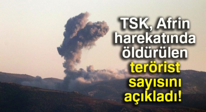 Türk Silahlı Kuvvetleri tarafından hudutlarda ve bölgede güvenlik ve istikrarı sağlamak amacıyla Suriye’nin Afrin bölgesinde PKK-KCK-PYD-YPG ve DEAŞ’a mensup teröristleri etkisiz hale getirmek ve bölge halkını baskı ve zulümden kurtarmak için 20 Ocak günü saat 17.00’den itibaren başlatılan Zeytin Dalı Harekâtı kapsamında Hava Kuvvetleri tarafından gerçekleştirilen hava harekâtı ile terör örgütlerine ait sığınak, barınak, mühimmat deposu ve silah mevzii olarak kullanılan 18 hedef imha edildi. TSK’dan yapılan açıklamada, “Zeytin Dalı Harekâtı kapsamında bölgeden elde edilen bilgilere göre 78 PKK-KCK-PYD-YPG ve DEAŞ terör örgütü mensubu etkisiz hale getirilmiştir. Harekâtın başlangıcından itibaren etkisiz hale getirilen terörist sayısı 790 olmuştur” ifadelerine yer verildi.
