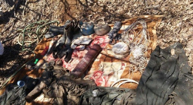 Operasyon kapsamında 8 sığınağın ele geçirildiği belirtilen açıklamada, “Sığınaklarda yapılan aramalarda 1 Kalaşnikof piyade tüfeği şarjörü, 61 adet küçük pil, 2 adet 6 voltluk akü, 7 piknik tüpü, 1 tüplü ekmek sacı, 1 adet tavla takımı, 32 adet örgütsel doküman (kitap/dergi), 535 metre kablo, 5 takım örgüt kıyafeti, 1 dikiş makinesi kasası, 2 adet dolu büyük tüp, 15 kilogram amonyum nitrat, 30 litre sıvı yağ, 4 adet kışlık kıyafet, 150 metre Amerikan fermuar, 8 kilogram mercimek, 10 kilogram salça, 10 kilogram bulgur, 20 metre su borusu ve 1 poşet muhtelif ilaç ele geçirilmiştir” denildi.