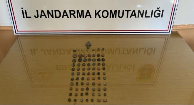 Erzincan İl Jandarma Komutanlığı ekiplerince yapılan çalışma sonucunda 2 şüpheli, tarihi eser niteliğinde 85 obje ve sikke ile birlikte yakalanarak gözaltına alındı.