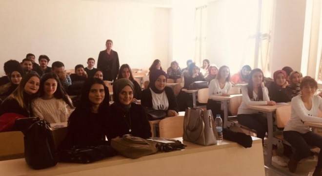 Şiddet Önleme ve İzleme Merkezi Müdürü Şükran Gökdaş, sosyoloji öğrencilerine kadın hizmetleri konusunda eğitim verdi.