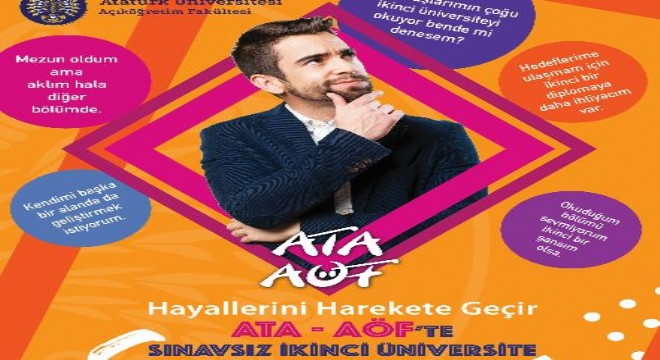 Atatürk Üniversitesi Açıköğretim Fakültesi programlarına, çeşitli nedenlerle herhangi bir yükseköğretim programında eğitim öğretim imkânı bulamayan veya açıktan aynı anda ikinci bir üniversite okumak isteyen öğrenci adaylarının sınavsız ikinci üniversite kapsamında kayıt yaptırma şansları devam ediyor.