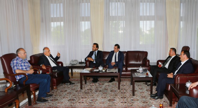 Türkiye Ekonomi Bankası ve Türkiye İhracatçılar Meclisi heyeti Atatürk Üniversitesi Rektörü Prof. Dr. Ömer Çomaklı’yı makamında ziyaret etti.