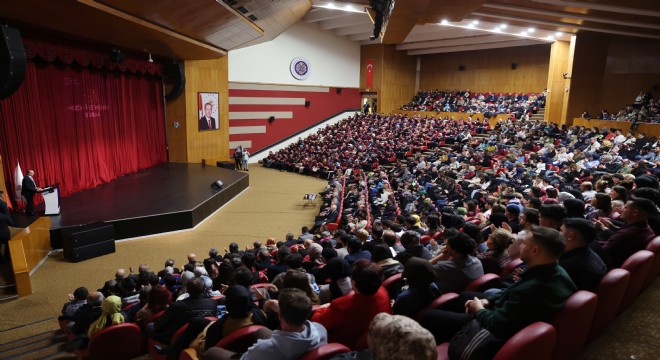 Rektör Hacımüftüoğlu, konuşmasının devamında Atatürk Üniversitesinin son yıllarda akademik üretkenlik, proje sayısı, uluslararası yayın performansı ve lisansüstü mezun sayısı açısından ülkemizin önde gelen yükseköğretim kurumlarından biri hâline geldiğini belirtti.