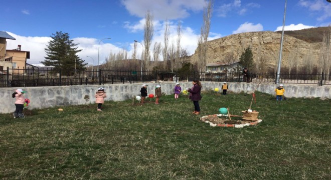 Narman Ana Okulu Öğrencileri Narman Şehitliğine Afrin şehitleri adına 65 fidan ağaç diktiler.