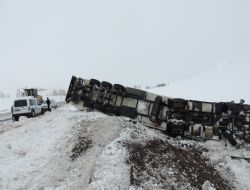 Şaban S. (46) yönetimindeki 33 BYC 23 plakalı TIR, Ağrı-Erzurum karayolunda kontrolden çıkarak şarampole yuvarlandı.