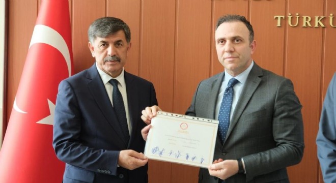 Erzincan Belediye Başkanı Bekir Aksun, mazbatasını Seçim Kurulu’ndan aldı.