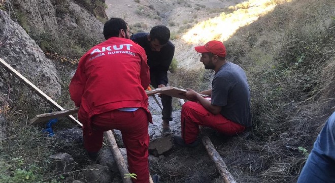 Erzurum’un Şenkaya ilçesinde kayalıklardan düşen inek akut ekipleri tarafından kurtarıldı.