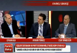 Erzurum’da uydu üzerinden yayın yapan Kardelen Televizyonu ekranlarında yayınlanan Deniz Gez’in sunduğu ‘Farklı Bakış’ programına katılan İçişleri eski Bakanı AK Parti Erzurum Milletvekili adayı Efkan Ala, İhlas Haber Ajansı Erzurum Bölge Müdürü Ayhan Türkez ve Gazeteci Esat Bindesen’in sorularını cevaplandırdı.
