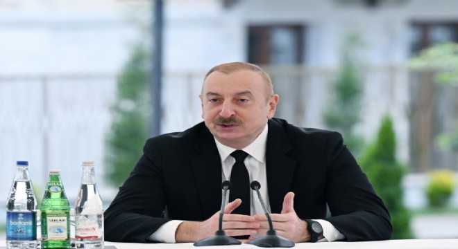 Kimsenin Azerbaycan ordusunun önünde duramayacağını belirten Aliyev, “Zaten bizim neler yapabileceğimizi, ordumuzun neler yapabileceğini, irademizin ne kadar güçlü olduğunu herkes biliyor. Kimse bize bir şeyi zorla kabul ettiremez, iç işlerimize kimse karışamaz” diye konuştu.