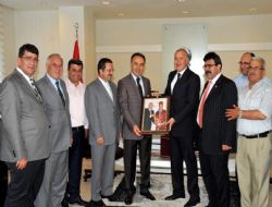 ANTALYA (İHA) - Antalya Esnaf ve Sanatkarlar Odaları Birliği’nde (AESOB) Başkan Abdullah Sevimçok, Başkan Yardımcıları Adlıhan Dere ve Mehmet Ali Alkan ile yönetim kurulu ve oda başkanları tarafından karşılanan Antalya Valisi Ahmet Altıparmak, Antalya’da görev yaptığı süre içerisinde bütün kurumlarla uyumlu çalıştıklarını ve AESOB ile de güzel çalışmalar yaptıklarını ifade etti. Antalya Esnaf ve Sanatkârlar Odaları Birliği Başkanı Abdullah Sevimçok bürokratların bir yerde ne kadar kalacağını belirleme şanslarının ve inisiyatiflerinin olmadığını belirterek, önemli olanın arkada bir hoş seda bırakabilmek olduğunu söyledi. Sevimçok, Vali Altıparmak’ın görev süresi boyunca gerek Ahilik kültür ve felsefesinin yaşatılması yönündeki destekleri ve esnafın sorunları, gerekse turizminde kaliteyi artırmak bakımından çok önemli işler yaptığını söyledi.