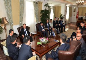 Vali Dr. Ahmet Altıparmak Çin Halk Cumhuriyeti Ankara Büyükelçisi Yu Hongyang ve beraberindeki heyeti kabul etti. Dünya çapında isim yapan, Türkiye’de de bir çok iş alanında projelere imza atan Çin firmalarının temsilcileri ile birlikte Vali Altıparmak’ı makamında ziyaret eden Büyükelçi Honyang, Vali Altıparmak’a Erzurum’a Atatürk Üniversitesi’nin düzenlediği sempozyuma katılmak ve Erzurum’un yatırım alanında geleceğe yönelik projelerini görüşmek, hangi alanlarda iş birliği yapabileceklerini öğrenmek için geldiklerini söyledi.