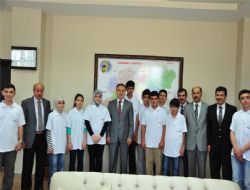 Öğrencilerle tek tek tanışan ve elde ettikleri sıralamayı öğrenen Vali Altıparmak hedeflerindeki meslek gruplarını da sorarak okul ve meslek seçimine ilişkin tavsiyelerde bulundu. Okul Müdürü Hüseyin Çelik ve eğitim kadrosunu da kutlayan Vali Altıparmak verimli ve planlı çalışmanın neticesinde başarının kendiliğinden geldiğine dikkat çekti. Makamında öğrencilerle uzun uzun sohbet eden, enstrümental çalıp çalamadıklarını ve İngilizce’yi ne kadar kullandıklarını soran Vali Altıparmak ziyaretin sonunda, içerisinde çeşitli hediyeler olan çanta ve altın hediye etti.
