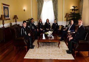 Polis Okulu Müdür vekili Ümit Ayhan kabulde, Eğitim Şube Müdürü Fatma Köse, Polis Memuru Menekşe Bozkurt ve Polis Okulu öğrencileri ile birlikte Vali Dr. Ahmet Altıparmak’a hafta dolayısıyla düzenlenen etkinlikler hakkında bilgi verdi.