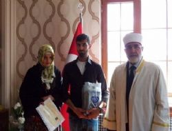 ERZURUM (İHA) - Daha önce Hıristiyan dinine mensup olan Gürcistan uyruklu Tinati Amarova, İslamiyet’i benimseyerek Meryem ismini aldı. Erzurum Müftülüğüne müracaat ederek ihtida talebinde bulunan Tinati Amarova’nın talebi memnuniyetle karşılandı. Müftülükte yapılan ihtida merasiminde okunan Kur’an-ı Kerimden sonra İl Müftüsü Yakup Arslan, İslam’ın kısaca tanımını yaptı. Şahitler huzurunda Kelime-i Şahadet getirerek Müslüman olan Meryem’in İslam inancına göre geçmişteki bütün günahlarının bağışlanacağını ve günahsız olarak yeni hayatına başlayacağını hatırlatan Yakup Arslan, Kur’an-ı Kerim, İslam İlmihali ile birlikte dini kitaplar hediye etti.