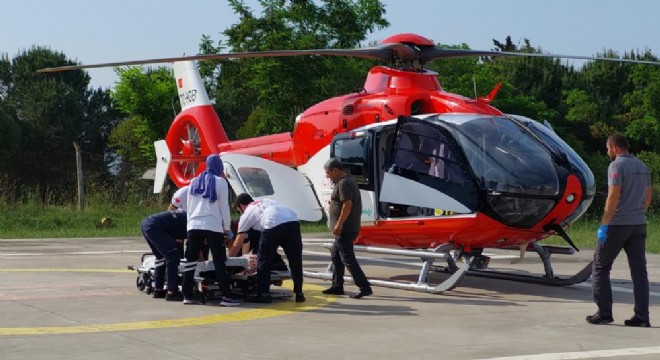 Zamanla yarışan helikopterden kara ambulansına nakledilen Özlem Y. Samsun'daki özel hastaneye kaldırıldı.