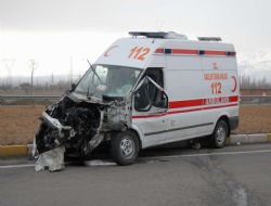 Hasta almaya giden ambulans Erzurum-Erzincan karayolunda  kamyonla çarpıştı, 3 sağlık görevlisi yaralandı.