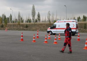 Uzman Trafik Eğitmenleri ve ambülansta görevli ATT ve Paramedik personel eşliğinde yapılan sürüş teknikleri eğitimlerinde ambülans sürücülerinin kaygan yolda manevra, viraj kabiliyeti, ileri ve geri sürüş teknikleri ile araca hakimiyetleri test edildi.