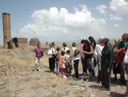 Kars’ta yaşayan Karslılar’ın bir çoğunun bile hiç görmediği Ani Harabeleri artık 7’den 70’e herkesi ağırlıyor. Geçtiğimiz günlerde de Erzurum’dan bir grup harabeleri gezip görme imkanı buldu. Ziyaretçiler arasında 3 yaşındaki İremnaz Kara ise herkesin ilgi odağı oldu. Tarihin görkemli yapıtları arasında gezinen İremnaz Kara harabelerin gelecek nesil tarafından da gezilip görüleceğinin işareti oldu.