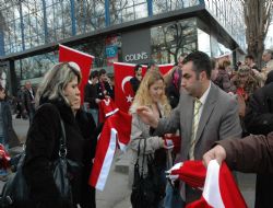 Açıklamanın ardından grup üyeleri beraberlerde getirdikleri 10 bin Türk bayrağını Kızılay Meydanı'nda dağıttı. Vatandaşlar bayrak alabilmek için birbiriyle yarıştı. Bayrak dağıtan grup üyeleri vatandaşların yoğun ilgisi nedeniyle zor anlar yaşadı.