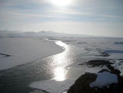 Oltu ilçesinde hava sıcaklığının eksi 4 dereceye düşmesinin ardından Oltu çayı buz akmaya başladı.