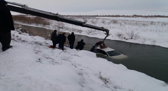 Horasan ilçesinde içerisinde 4 kişi bulunan otomobil, sürücünün direksiyon hakimiyetini kaybetmesi üzerine buzlu zeminde kayarak Aras nehrine uçtu.